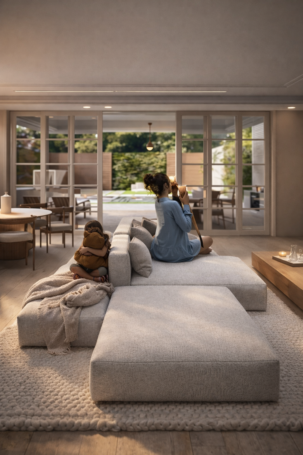 The clients came to me even before the licensing stage. They received architectural plans and wanted a beautiful, well-planned, and cozy home – but had difficulty understanding what exactly was planned for them. An architectural plan is professional language. For those who are not used to reading it, it is difficult to see the future home: what the living room will look like, how the kitchen connects to the space, what the feeling of space will be, and how everything will work together. Through visualizations of the house – the public space, the kitchen, the living room, the balconies, and the bedrooms, we were able to turn the lines in the plan into a clear reality.