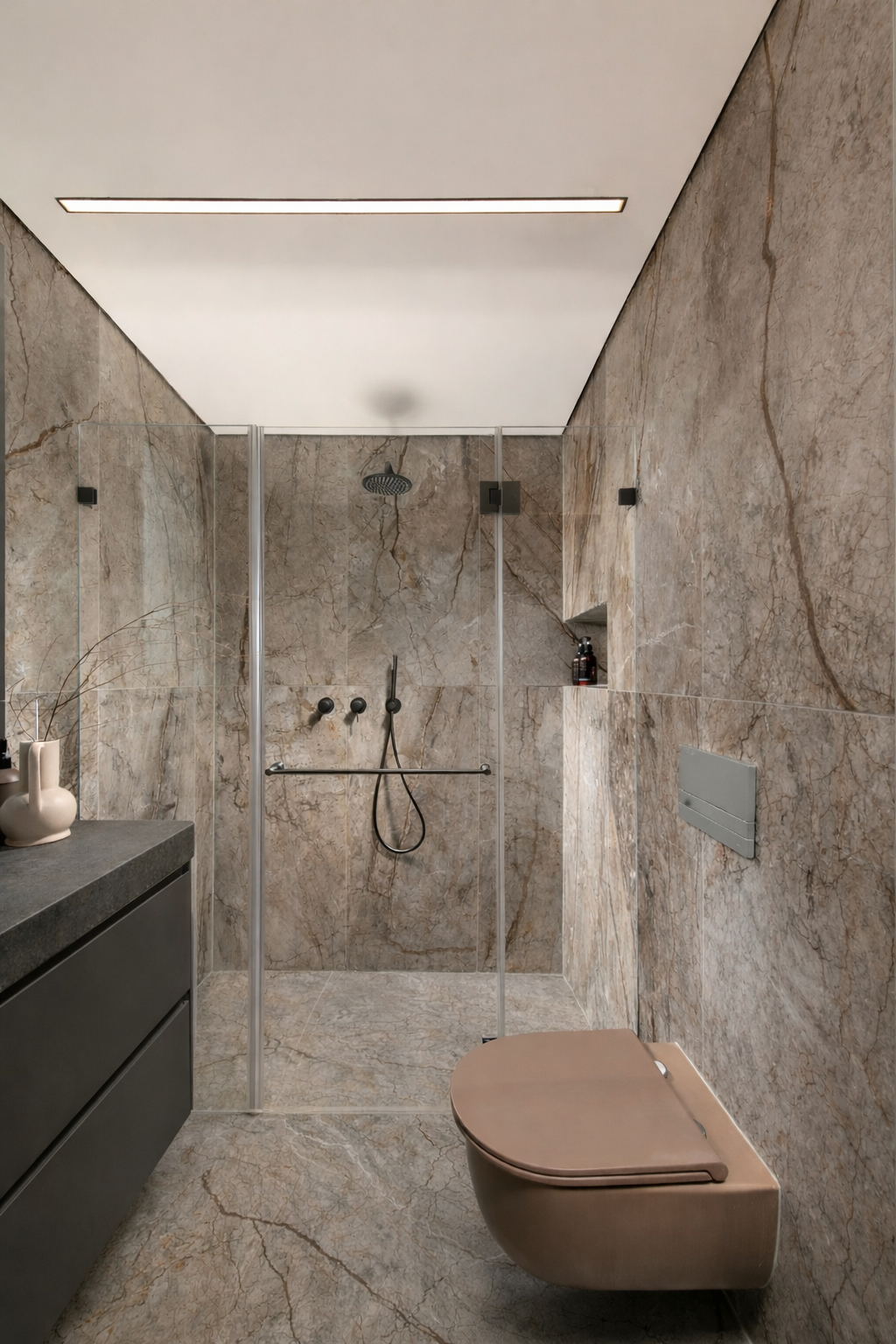 תכנון מקום למגבות, מתלים מחוממים אם אוהבים.