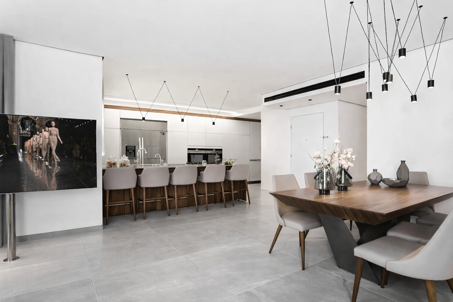דירת קבלן על שפת הים שלוותה מסקיצה ראשונית ,תכנון והדמיה ,בחירת החומרים ליווי תהליך הבניה תוכניות נגרות ועד לפרט הכי קטן בבית .